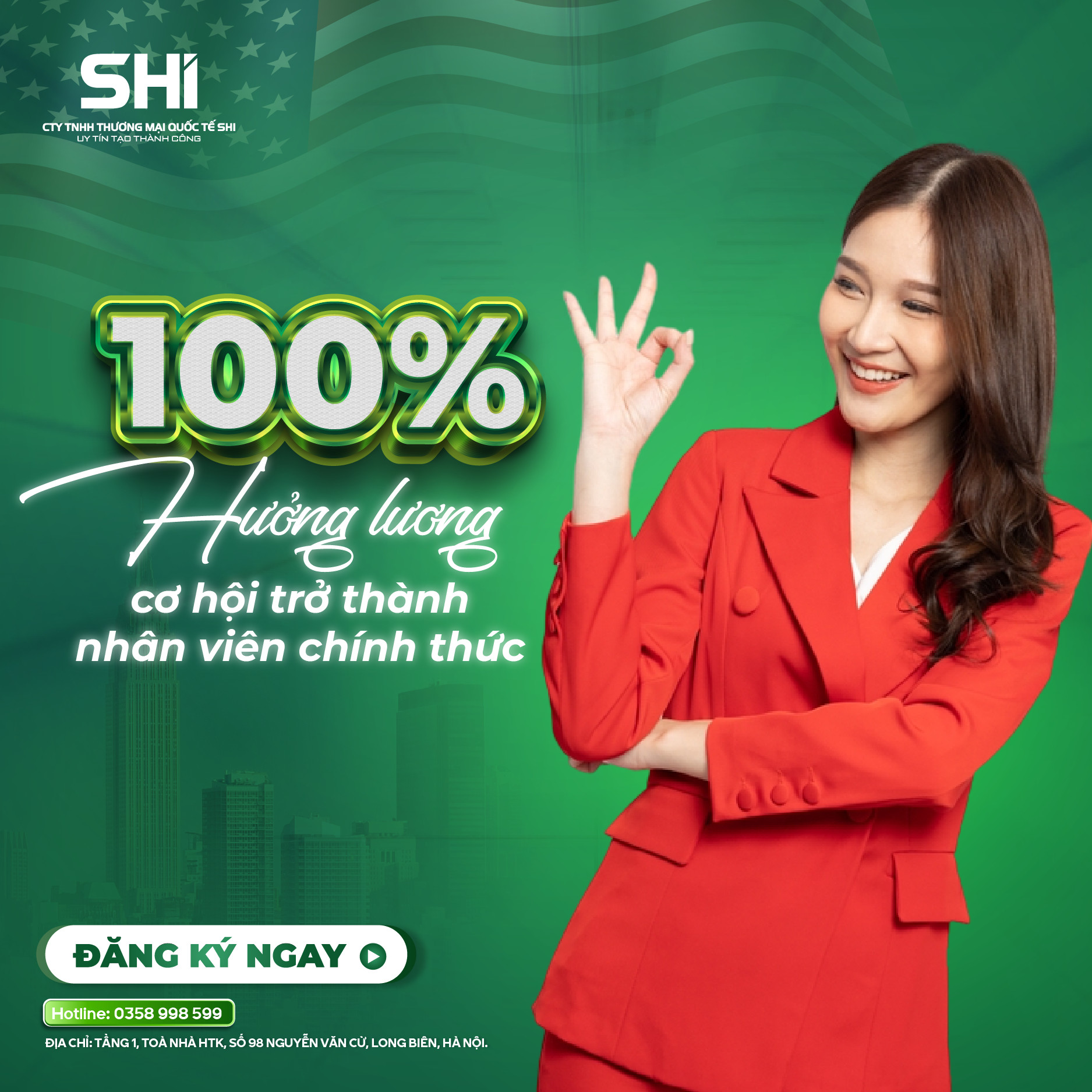 Công ty TNHH Thương mại Quốc tế SHI là đơn vị tư vấn, đào tạo và kết nối nhân lực quốc tế uy tín tại Việt Nam. Chúng tôi hoạt động với phương châm “Uy tín tạo nên thành công”, cam kết cung cấp các giải pháp minh bạch, bền vững và phù hợp, đáp ứng nhu cầu của người lao động, học viên và các đối tác quốc tế.
