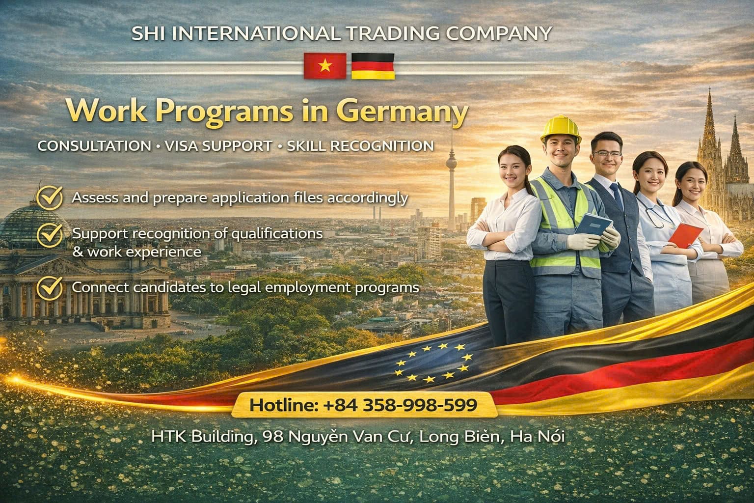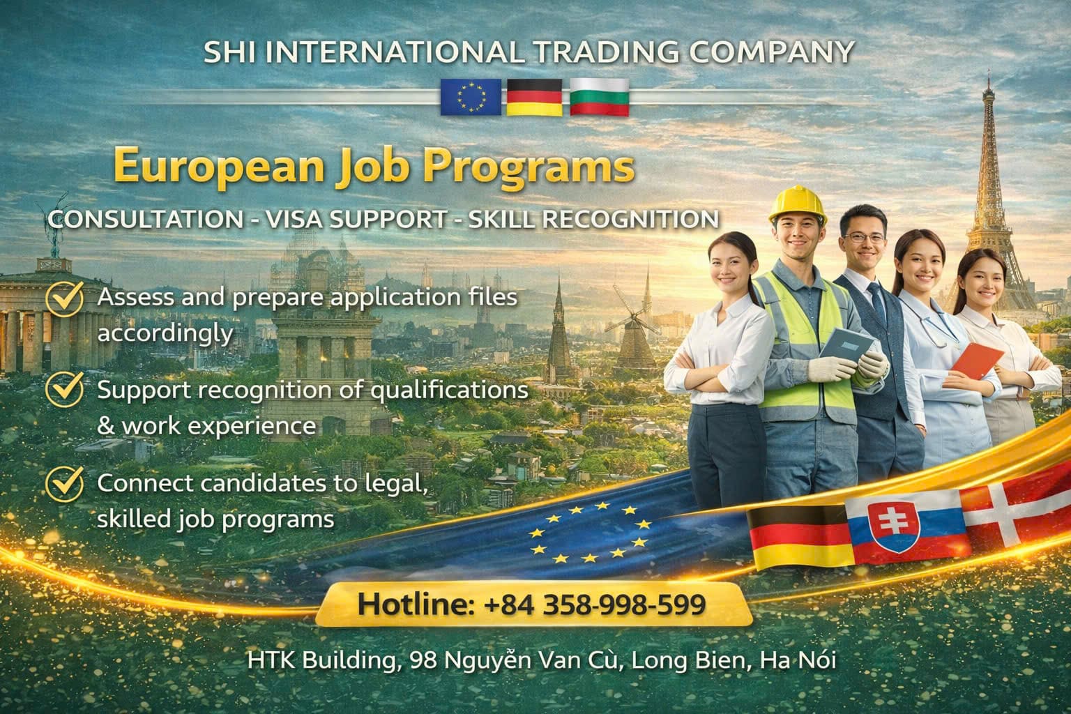 là đơn vị tư vấn, đào tạo và kết nối nhân lực quốc tế uy tín tại Việt Nam. Chúng tôi hoạt động với phương châm “Uy tín tạo nên thành công”, cam kết cung cấp các giải pháp minh bạch, bền vững và phù hợp, đáp ứng nhu cầu của người lao động, học viên và các đối tác quốc tế.